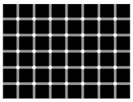 Cuando miras fíjamente este dibujo, ¿no ves puntos negros parpadeantes en los espacios en blanco?